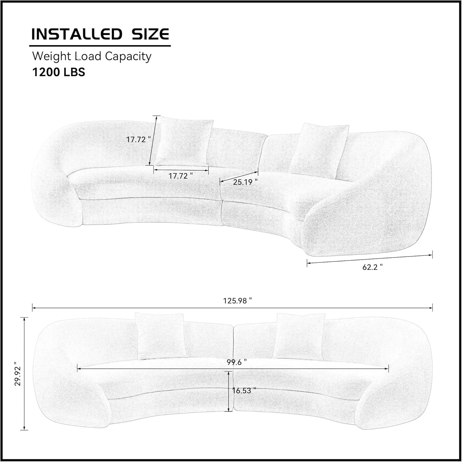 - [Modern Curved Sofa] Elevate your home’s sophistication with this stunning curved sofa, carefully crafted to merge artistic design and functional comfort. The oversized love heart-shaped back and armrests make it not only a piece of furniture, but also a focal point of style and romance in your space.
